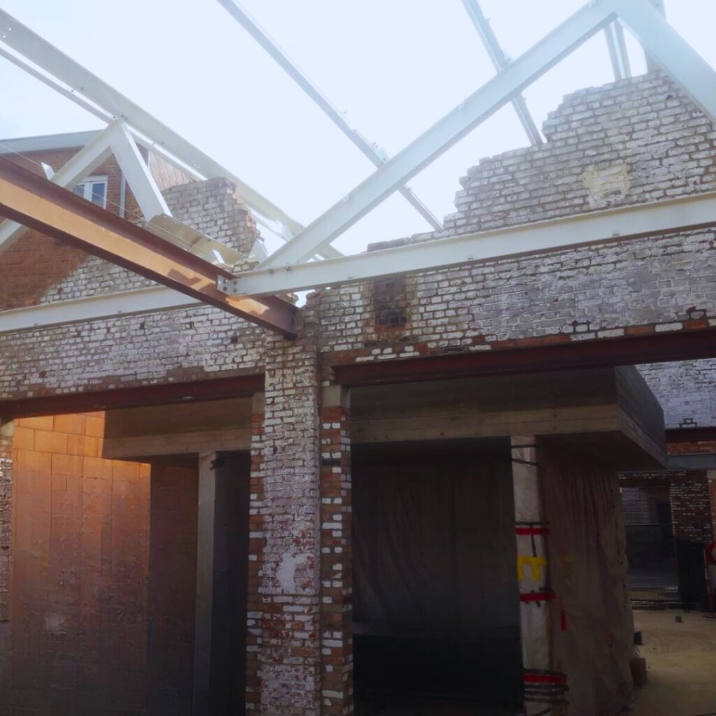 Kolejnym wyzwaniem była integracja nowej części obiektu z istniejącą, ceglaną ścianą, która została przedłużona i połączona z konstrukcją wykonaną z nowoczesnych materiałów. Wymagało to precyzyjnego zaprojektowania detali połączeń oraz dostosowania technologii montażu do zróżnicowanej struktury i nośności obu części obiektu.