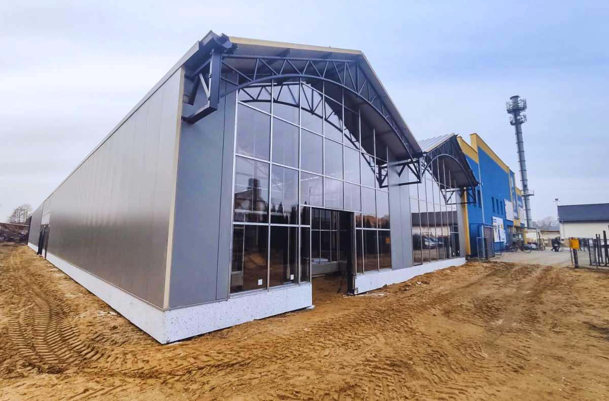 Funkcjonalna przestrzeń została zaprojektowana z myślą o ekspozycji asortymentu ogrodniczego oraz zintegrowaniu z istniejącym obiektem.